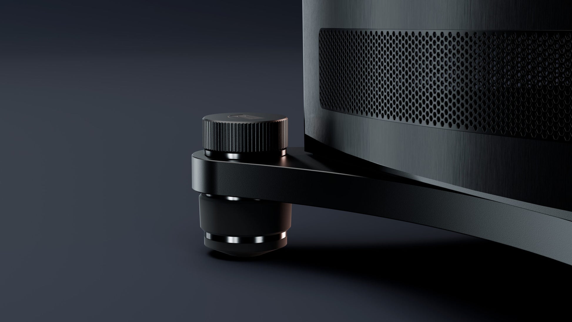 Die massiven Aluminium-Seitenpaneele erhöhen die Gehäusesteifigkeit und verbessern die Dämpfung deutlich. Zusammen mit dem schweren, präzisionsgefertigten Stahlfuß entsteht ein extrem resonanzarmes Fundament, das selbst bei hohen Pegeln absolute Kontrolle bewahrt.